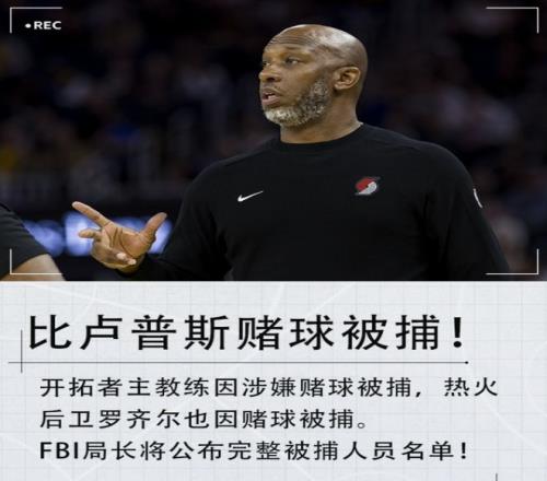 根据美国媒体NBC爆料,开拓者主教练比卢普斯,因为参与非法赌球被逮捕,随后很多NBA记者也证实了这一消息。而在比卢普斯被捕的消息曝光前几十分钟,热火队后卫也因同样的理由被逮捕。